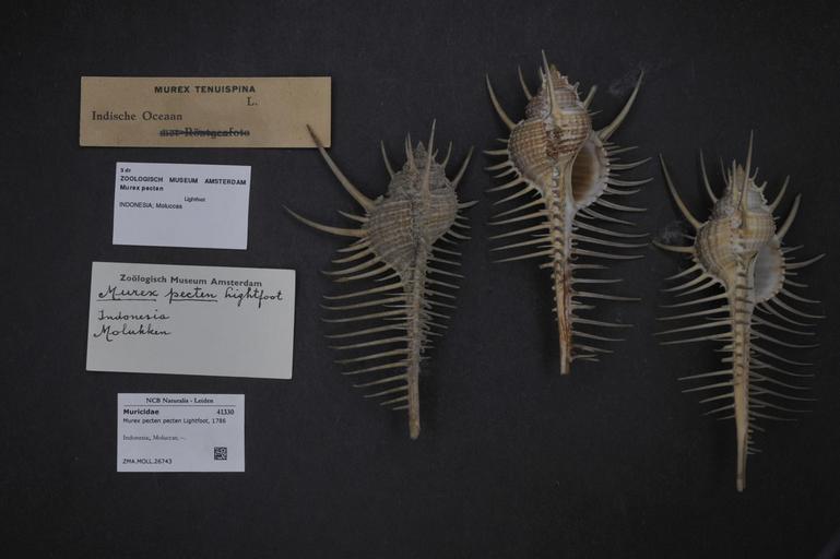 Keywords: Naturalis Biodiversity Center - ZMA.MOLL.26743 - Murex pecten pecten Lightfoot, 1786 - Muricidae - Mollusc shell.jpeg artwork Dimensions artwork Document type Muricidae subfamily Muricinae Murex Individual count Infraspecific epithet pecten Infraspecific rank Institution Naturalis Kind of unit artwork Kind of unit specimen shell Life stage Indonesia; Moluccas Medium artwork Nomenclatural code Scale the width of the text on the species/QR-code label is 38 mm Occurrence ID page Neogastropoda Other fields Other versions artwork Permission license Naturalis donation CC-0 Mollusca Publication location Scientific name Murex pecten pecten Lightfoot 1786 Scientific name authorship Lightfoot 1786 Source url http //bioportal naturalis nl Specific epithet pecten State or province Moluccas Subject keywords artwork Subject keywords publication Title artwork Title publication Type status Uploaded with GWToolset Naturalis_Biodiversity_Center_-_ZMA MOLL 26743_-_Murex_pecten_pecten_Lightfoot _1786_-_Muricidae_-_Mollusc_shell http //medialib naturalis nl/file/id/ZMA MOLL 26743/format/large Media donated by Naturalis Biodiversity Center Molluscs at Naturalis from the Zoölogisch Museum Amsterdam Murex pecten |