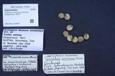 | Keywords: Naturalis Biodiversity Center - ZMA.MOLL.403655 - Trochulus (Trochulus) sericeus (Draparnaud, 1801) - Hygromiidae - Mollusc shell.jpeg artwork Dimensions artwork Document type Hygromiidae Trochulus Individual count Infraspecific epithet Infraspecific rank Institution Naturalis Kind of unit artwork Kind of unit specimen shell Life stage Medium artwork Nomenclatural code Source institute Rijksmuseum van Natuurlijke Historie Leiden Scale the width of the text on the species/QR-code label is 38 mm Occurrence ID page Other fields Other versions artwork Permission license Naturalis donation CC-0 Mollusca Publication location Scientific name Trochulus Trochulus sericeus Draparnaud 1801 Scientific name authorship Draparnaud 1801 Source url http //bioportal naturalis nl Specific epithet sericeus State or province Subject keywords artwork Subject keywords publication Title artwork Title publication Type status Uploaded with GWToolset Naturalis_Biodiversity_Center_-_ZMA MOLL 403655_-_Trochulus_ Trochulus _sericeus_ Draparnaud _1801 _-_Hygromiidae_-_Mollusc_shell http //medialib naturalis nl/file/id/ZMA MOLL 403655/format/large Molluscs at Naturalis from the Zoölogisch Museum Amsterdam Media donated by Naturalis Biodiversity Center Trochulus sericeus Trochulus |