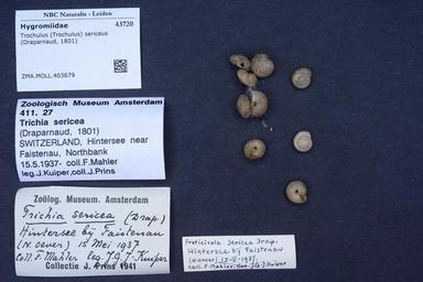 | Keywords: Naturalis Biodiversity Center - ZMA.MOLL.403679 - Trochulus (Trochulus) sericeus (Draparnaud, 1801) - Hygromiidae - Mollusc shell.jpeg artwork Dimensions artwork Document type Hygromiidae Trochulus Individual count Infraspecific epithet Infraspecific rank Institution Naturalis Kind of unit artwork Kind of unit specimen shell Life stage Medium artwork Nomenclatural code Source institute Rijksmuseum van Natuurlijke Historie Leiden Scale the width of the text on the species/QR-code label is 38 mm Occurrence ID page Other fields Other versions artwork Permission license Naturalis donation CC-0 Mollusca Publication location Scientific name Trochulus Trochulus sericeus Draparnaud 1801 Scientific name authorship Draparnaud 1801 Source url http //bioportal naturalis nl Specific epithet sericeus State or province Subject keywords artwork Subject keywords publication Title artwork Title publication Type status Uploaded with GWToolset Naturalis_Biodiversity_Center_-_ZMA MOLL 403679_-_Trochulus_ Trochulus _sericeus_ Draparnaud _1801 _-_Hygromiidae_-_Mollusc_shell http //medialib naturalis nl/file/id/ZMA MOLL 403679/format/large Molluscs at Naturalis from the Zoölogisch Museum Amsterdam Media donated by Naturalis Biodiversity Center Trochulus sericeus Trochulus |