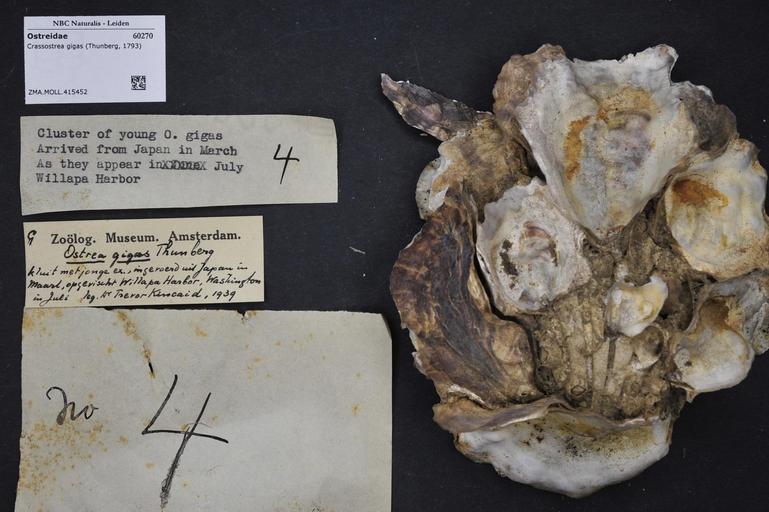 | Keywords: Naturalis Biodiversity Center - ZMA.MOLL.415452 - Crassostrea gigas (Thunberg, 1793) - Ostreidae - Mollusc shell.jpeg artwork Dimensions artwork Document type Ostreidae subfamily Ostreinae Crassostrea Individual count Infraspecific epithet Infraspecific rank Institution Naturalis Kind of unit artwork Kind of unit specimen shell Life stage Medium artwork Nomenclatural code Source institute Zoölogisch Museum Amsterdam Scale the width of the text on the species/QR-code label is 38 mm Occurrence ID page Other fields Other versions artwork Permission license Naturalis donation CC-0 Mollusca Publication location Scientific name Crassostrea gigas Thunberg 1793 Scientific name authorship Thunberg 1793 Source url http //bioportal naturalis nl Specific epithet gigas State or province Subject keywords artwork Subject keywords publication Title artwork Title publication Type status Uploaded with GWToolset Naturalis_Biodiversity_Center_-_ZMA MOLL 415452_-_Crassostrea_gigas_ Thunberg _1793 _-_Ostreidae_-_Mollusc_shell http //medialib naturalis nl/file/id/ZMA MOLL 415452/format/large Molluscs at Naturalis from the Zoölogisch Museum Amsterdam Media donated by Naturalis Biodiversity Center Crassostrea gigas Crassostrea |