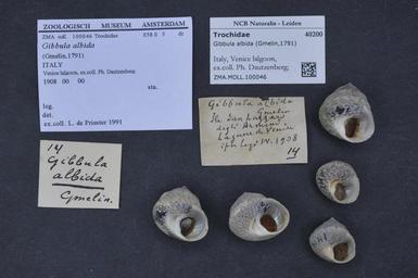 | Keywords: Naturalis Biodiversity Center - ZMA.MOLL.100046 - Gibbula albida (Gmelin, 1791) - Trochidae - Mollusc shell.jpeg artwork Dimensions artwork Document type Trochidae subfamily Gibbulinae Gibbula Individual count Infraspecific epithet Infraspecific rank Institution Naturalis Kind of unit artwork Kind of unit specimen shell Life stage Italy Venice lalgoon ex coll Ph Dautzenberg; 1908 Medium artwork Nomenclatural code coll Scale the width of the text on the species/QR-code label is 38 mm Occurrence ID page Other fields Other versions artwork Permission license Naturalis donation CC-0 Mollusca Publication location Scientific name Gibbula albida Gmelin 1791 Scientific name authorship Gmelin 1791 Source url http //bioportal naturalis nl Specific epithet albida State or province Subject keywords artwork Subject keywords publication Title artwork Title publication Type status Uploaded with GWToolset Naturalis_Biodiversity_Center_-_ZMA MOLL 100046_-_Gibbula_albida_ Gmelin _1791 _-_Trochidae_-_Mollusc_shell http //medialib naturalis nl/file/id/ZMA MOLL 100046/format/large Media donated by Naturalis Biodiversity Center Molluscs at Naturalis from the Zoölogisch Museum Amsterdam Gibbula albida Gibbula |