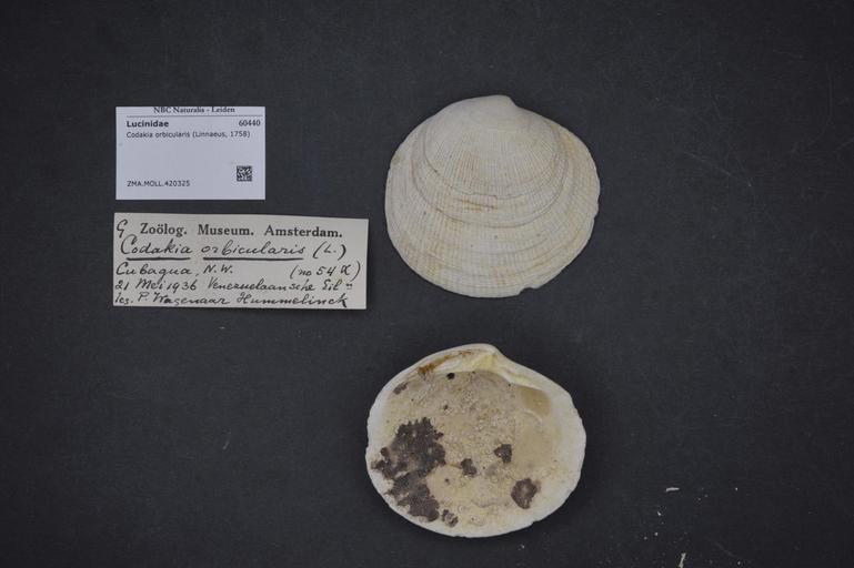 | Keywords: Naturalis Biodiversity Center - ZMA.MOLL.420325 - Codakia orbicularis (Linnaeus, 1758) - Lucinidae - Mollusc shell.jpeg artwork Dimensions artwork Document type Lucinidae subfamily Lucininae Codakia Individual count Infraspecific epithet Infraspecific rank Institution Naturalis Kind of unit artwork Kind of unit specimen shell Life stage Medium artwork Nomenclatural code Source institute Zoölogisch Museum Amsterdam Scale the width of the text on the species/QR-code label is 38 mm Occurrence ID page Other fields Other versions artwork Permission license Naturalis donation CC-0 Mollusca Publication location Scientific name Codakia orbicularis Linnaeus 1758 Scientific name authorship Linnaeus 1758 Source url http //bioportal naturalis nl Specific epithet orbicularis State or province Subject keywords artwork Subject keywords publication Title artwork Title publication Type status Uploaded with GWToolset Naturalis_Biodiversity_Center_-_ZMA MOLL 420325_-_Codakia_orbicularis_ Linnaeus _1758 _-_Lucinidae_-_Mollusc_shell http //medialib naturalis nl/file/id/ZMA MOLL 420325/format/large Molluscs at Naturalis from the Zoölogisch Museum Amsterdam Media donated by Naturalis Biodiversity Center Codakia orbicularis Codakia |