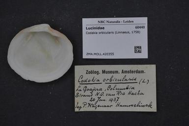 | Keywords: Naturalis Biodiversity Center - ZMA.MOLL.420355 - Codakia orbicularis (Linnaeus, 1758) - Lucinidae - Mollusc shell.jpeg artwork Dimensions artwork Document type Lucinidae subfamily Lucininae Codakia Individual count Infraspecific epithet Infraspecific rank Institution Naturalis Kind of unit artwork Kind of unit specimen shell Life stage Medium artwork Nomenclatural code Source institute Zoölogisch Museum Amsterdam Scale the width of the text on the species/QR-code label is 38 mm Occurrence ID page Other fields Other versions artwork Permission license Naturalis donation CC-0 Mollusca Publication location Scientific name Codakia orbicularis Linnaeus 1758 Scientific name authorship Linnaeus 1758 Source url http //bioportal naturalis nl Specific epithet orbicularis State or province Subject keywords artwork Subject keywords publication Title artwork Title publication Type status Uploaded with GWToolset Naturalis_Biodiversity_Center_-_ZMA MOLL 420355_-_Codakia_orbicularis_ Linnaeus _1758 _-_Lucinidae_-_Mollusc_shell http //medialib naturalis nl/file/id/ZMA MOLL 420355/format/large Molluscs at Naturalis from the Zoölogisch Museum Amsterdam Media donated by Naturalis Biodiversity Center Codakia orbicularis Codakia |