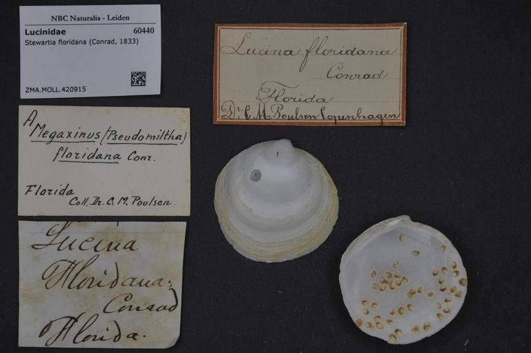 | Keywords: Naturalis Biodiversity Center - ZMA.MOLL.420915 - Stewartia floridana (Conrad, 1833) - Lucinidae - Mollusc shell.jpeg artwork Dimensions artwork Document type Lucinidae Stewartia Individual count Infraspecific epithet Infraspecific rank Institution Naturalis Kind of unit artwork Kind of unit specimen shell Life stage Medium artwork Nomenclatural code Source institute Zoölogisch Museum Amsterdam Scale the width of the text on the species/QR-code label is 38 mm Occurrence ID page Other fields Other versions artwork Permission license Naturalis donation CC-0 Mollusca Publication location Scientific name Stewartia floridana Conrad 1833 Scientific name authorship Conrad 1833 Source url http //bioportal naturalis nl Specific epithet floridana State or province Subject keywords artwork Subject keywords publication Title artwork Title publication Type status Uploaded with GWToolset Naturalis_Biodiversity_Center_-_ZMA MOLL 420915_-_Stewartia_floridana_ Conrad _1833 _-_Lucinidae_-_Mollusc_shell http //medialib naturalis nl/file/id/ZMA MOLL 420915/format/large Molluscs at Naturalis from the Zoölogisch Museum Amsterdam Media donated by Naturalis Biodiversity Center Stewartia floridana Stewartia |