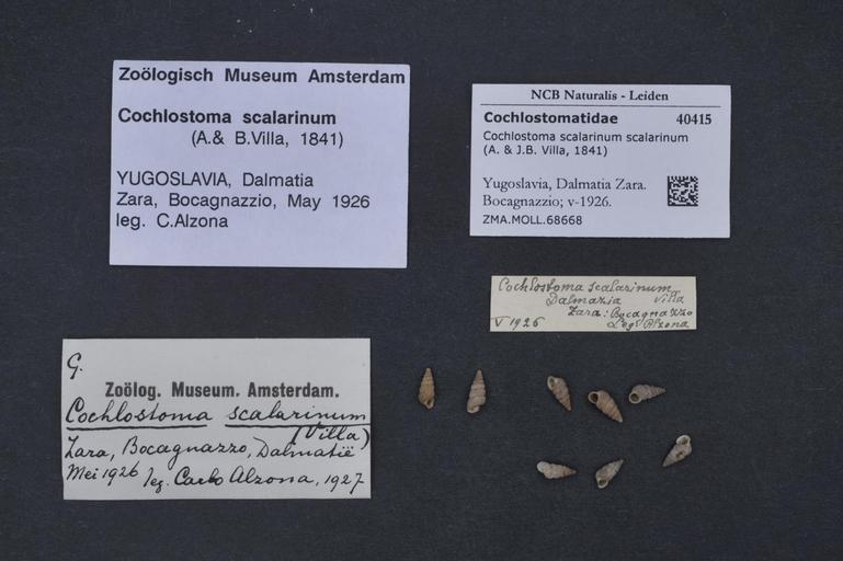 Keywords: Naturalis Biodiversity Center - ZMA.MOLL.68668 - Cochlostoma scalarinum scalarinum (Villa & Villa, 1841) - Cochlostomatidae - Mollusc shell.jpeg artwork Dimensions artwork Document type Cochlostomatidae Cochlostoma Individual count Infraspecific epithet scalarinum Infraspecific rank Institution Naturalis Kind of unit artwork Kind of unit specimen shell Life stage Yugoslavia Dalmatia Zara Bocagnazzio; v-1926 Medium artwork Nomenclatural code Source institute Zoölogisch Museum Amsterdam Scale the width of the text on the species/QR-code label is 38 mm Occurrence ID page Other fields Other versions artwork Permission license Naturalis donation CC-0 Mollusca Publication location Scientific name Cochlostoma scalarinum scalarinum Villa Villa 1841 Scientific name authorship Villa Villa 1841 Source url http //bioportal naturalis nl Specific epithet scalarinum State or province Subject keywords artwork Subject keywords publication Title artwork Title publication Type status Uploaded with GWToolset Naturalis_Biodiversity_Center_-_ZMA MOLL 68668_-_Cochlostoma_scalarinum_scalarinum_ Villa_ _Villa _1841 _-_Cochlostomatidae_-_Mollusc_shell http //medialib naturalis nl/file/id/ZMA MOLL 68668/format/large Molluscs at Naturalis from the Zoölogisch Museum Amsterdam Media donated by Naturalis Biodiversity Center Cochlostoma scalarinum Cochlostoma |