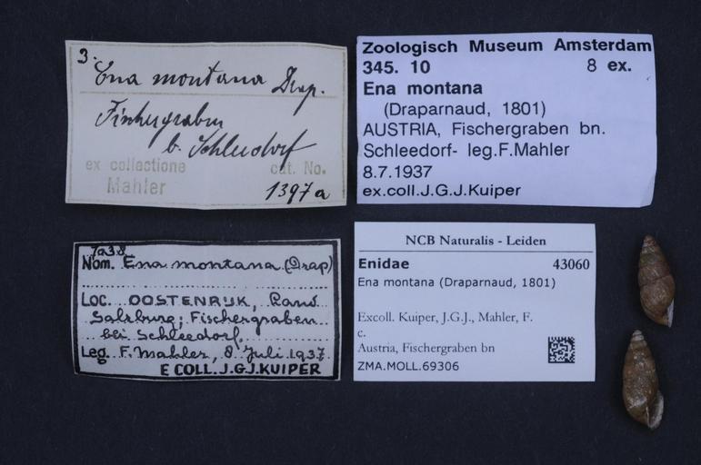 | Keywords: Naturalis Biodiversity Center - ZMA.MOLL.69306 - Ena montana (Draparnaud, 1801) - Enidae - Mollusc shell.jpeg artwork Dimensions artwork Document type Enidae subfamily Bulimininae Ena Individual count Infraspecific epithet Infraspecific rank Institution Naturalis Kind of unit artwork Kind of unit specimen shell Life stage Austria Fischergraben bn Schleedorf; 8-vii-1937 Medium artwork Nomenclatural code Source institute Zoölogisch Museum Amsterdam Scale the width of the text on the species/QR-code label is 38 mm Occurrence ID page Other fields Other versions artwork Permission license Naturalis donation CC-0 Mollusca Publication location Scientific name Ena montana Draparnaud 1801 Scientific name authorship Draparnaud 1801 Source url http //bioportal naturalis nl Specific epithet montana State or province Subject keywords artwork Subject keywords publication Title artwork Title publication Type status Uploaded with GWToolset Naturalis_Biodiversity_Center_-_ZMA MOLL 69306_-_Ena_montana_ Draparnaud _1801 _-_Enidae_-_Mollusc_shell http //medialib naturalis nl/file/id/ZMA MOLL 69306/format/large Molluscs at Naturalis from the Zoölogisch Museum Amsterdam Media donated by Naturalis Biodiversity Center Ena montana Ena |
