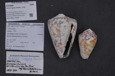 | Keywords: Naturalis Biodiversity Center - ZMA.MOLL.71812 - Conus regius Gmelin, 1791 - Conidae - Mollusc shell.jpeg artwork Dimensions artwork Document type Conidae Conus Individual count Infraspecific epithet Infraspecific rank Institution Naturalis Kind of unit artwork Kind of unit specimen shell Life stage Netherlands Antilles Curaçao between Willemstad and Jan Thiel Bay; lat 12 27 lon -69 13; 1929 stn new Medium artwork Nomenclatural code Source institute Zoölogisch Museum Amsterdam Scale the width of the text on the species/QR-code label is 38 mm Occurrence ID page Other fields Other versions artwork Permission license Naturalis donation CC-0 Mollusca Publication location Scientific name Conus regius Gmelin 1791 Scientific name authorship Gmelin 1791 Source url http //bioportal naturalis nl Specific epithet regius State or province Curaçao Subject keywords artwork Subject keywords publication Title artwork Title publication Type status Uploaded with GWToolset Naturalis_Biodiversity_Center_-_ZMA MOLL 71812_-_Conus_regius_Gmelin _1791_-_Conidae_-_Mollusc_shell http //medialib naturalis nl/file/id/ZMA MOLL 71812/format/large Molluscs at Naturalis from the Zoölogisch Museum Amsterdam Media donated by Naturalis Biodiversity Center Conus regius Conus |