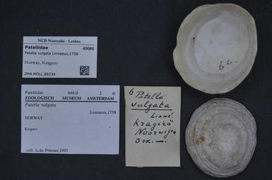 | Keywords: Naturalis Biodiversity Center - ZMA.MOLL.89234 - Patella vulgata Linnaeus, 1758 - Patellidae - Mollusc shell.jpeg artwork Dimensions artwork Document type Patellidae subfamily Patellinae Patella Individual count Infraspecific epithet Infraspecific rank Institution Naturalis Kind of unit artwork Kind of unit specimen shell Life stage Norway Kragero Medium artwork Nomenclatural code Source institute Zoölogisch Museum Amsterdam Scale the width of the text on the species/QR-code label is 38 mm Occurrence ID page Other fields Other versions artwork Permission license Naturalis donation CC-0 Mollusca Publication location Scientific name Patella vulgata Linnaeus 1758 Scientific name authorship Linnaeus 1758 Source url http //bioportal naturalis nl Specific epithet vulgata State or province Subject keywords artwork Subject keywords publication Title artwork Title publication Type status Uploaded with GWToolset Naturalis_Biodiversity_Center_-_ZMA MOLL 89234_-_Patella_vulgata_Linnaeus _1758_-_Patellidae_-_Mollusc_shell http //medialib naturalis nl/file/id/ZMA MOLL 89234/format/large Molluscs at Naturalis from the Zoölogisch Museum Amsterdam Media donated by Naturalis Biodiversity Center Patella vulgata Patella |