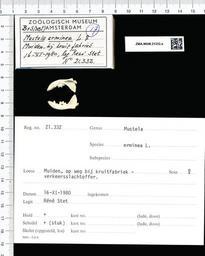 | Keywords: Naturalis Biodiversity Center - ZMA.MAM.21332.a lat1 - Mustela erminea Linnaeus - skull.jpeg artwork Dimensions artwork Document type Mustela Individual count 1 Infraspecific epithet Infraspecific rank Institution Naturalis Kind of unit artwork Kind of unit specimen skull Life stage Muiden bij kruitfabriek Medium artwork Nomenclatural code Occurrence ID page Other fields Other versions artwork Permission license Naturalis donation CC-0 Publication location Scientific name Mustela erminea Linnaeus Scientific name authorship Linnaeus female Source url http //bioportal naturalis nl Specific epithet erminea State or province Subject keywords artwork Subject keywords publication Title artwork Title publication Type status Uploaded with GWToolset Naturalis_Biodiversity_Center_-_ZMA MAM 21332 a_lat1_-_Mustela_erminea_Linnaeus_-_skull http //medialib naturalis nl/file/id/ZMA MAM 21332 a_lat1/format/large Mammals at Naturalis from the Zoölogisch Museum Amsterdam Media donated by Naturalis Biodiversity Center Mustela erminea Mustela |