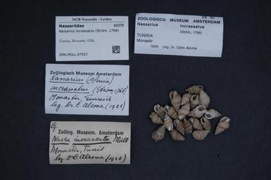 | Keywords: Naturalis Biodiversity Center - ZMA.MOLL.97557 - Nassarius incrassatus (Stroem, 1768) - Nassariidae - Mollusc shell.jpeg artwork Dimensions artwork Document type Nassariidae subfamily Nassariinae Nassarius Individual count Infraspecific epithet Infraspecific rank Institution Naturalis Kind of unit artwork Kind of unit specimen shell Life stage Tunisia Monastir; 1926 Medium artwork Nomenclatural code Moll Source institute Zoölogisch Museum Amsterdam Scale the width of the text on the species/QR-code label is 38 mm Occurrence ID page Other fields Other versions artwork Permission license Naturalis donation CC-0 Mollusca Publication location Scientific name Nassarius incrassatus Stroem 1768 Scientific name authorship Stroem 1768 Source url http //bioportal naturalis nl Specific epithet incrassatus State or province Subject keywords artwork Subject keywords publication Title artwork Title publication Type status Uploaded with GWToolset Naturalis_Biodiversity_Center_-_ZMA MOLL 97557_-_Nassarius_incrassatus_ Stroem _1768 _-_Nassariidae_-_Mollusc_shell http //medialib naturalis nl/file/id/ZMA MOLL 97557/format/large Molluscs at Naturalis from the Zoölogisch Museum Amsterdam Media donated by Naturalis Biodiversity Center Nassarius incrassatus Nassarius |