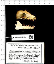 | Keywords: Naturalis Biodiversity Center - ZMA.MAM.22705.a lat - Styloctenium wallacei - skull.jpeg artwork Dimensions artwork Document type Styloctenium Individual count Infraspecific epithet Infraspecific rank Institution Naturalis Kind of unit artwork Kind of unit specimen skull Life stage Gekocht op markt te Imandi Noord-Sulawesi Indonesia Medium artwork Nomenclatural code Occurrence ID page Other fields Other versions artwork Permission license Naturalis donation CC-0 Publication location Scientific name Styloctenium wallacei Scientific name authorship male Source url http //bioportal naturalis nl Specific epithet wallacei State or province Subject keywords artwork Subject keywords publication Title artwork Title publication Type status Uploaded with GWToolset Naturalis_Biodiversity_Center_-_ZMA MAM 22705 a_lat_-_Styloctenium_wallacei_-_skull http //medialib naturalis nl/file/id/ZMA MAM 22705 a_lat/format/large Mammals at Naturalis from the Zoölogisch Museum Amsterdam Media donated by Naturalis Biodiversity Center Styloctenium wallacei Styloctenium |