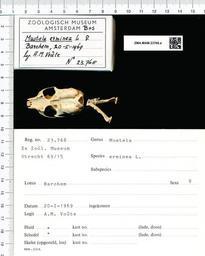 | Keywords: Naturalis Biodiversity Center - ZMA.MAM.23768.a pal - Mustela erminea Linnaeus - skull.jpeg artwork Dimensions artwork Document type Mustela Individual count 1 Infraspecific epithet Infraspecific rank Institution Naturalis Kind of unit artwork Kind of unit specimen skull Life stage Netherlands Gelderland Barchem Medium artwork Nomenclatural code Occurrence ID page Other fields Other versions artwork Permission license Naturalis donation CC-0 Publication location Scientific name Mustela erminea Linnaeus Scientific name authorship Linnaeus female Source url http //bioportal naturalis nl Specific epithet erminea State or province Gelderland Subject keywords artwork Subject keywords publication Title artwork Title publication Type status Uploaded with GWToolset Naturalis_Biodiversity_Center_-_ZMA MAM 23768 a_pal_-_Mustela_erminea_Linnaeus_-_skull http //medialib naturalis nl/file/id/ZMA MAM 23768 a_pal/format/large Mammals at Naturalis from the Zoölogisch Museum Amsterdam Media donated by Naturalis Biodiversity Center Mustela erminea Mustela |