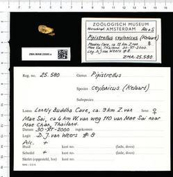 | Keywords: Naturalis Biodiversity Center - ZMA.MAM.25580.a lat - Pipistrellus ceylonicus - skull.jpeg artwork Dimensions artwork Document type Pipistrellus Individual count 1 Infraspecific epithet Infraspecific rank Institution Naturalis Kind of unit artwork Kind of unit specimen skull Life stage Monkey Cave ca 12 Z van Mae Sai Thailand Medium artwork Nomenclatural code Occurrence ID page Other fields Other versions artwork Permission license Naturalis donation CC-0 Publication location Scientific name Pipistrellus ceylonicus Scientific name authorship female Source url http //bioportal naturalis nl Specific epithet ceylonicus State or province Subject keywords artwork Subject keywords publication Title artwork Title publication Type status Uploaded with GWToolset Naturalis_Biodiversity_Center_-_ZMA MAM 25580 a_lat_-_Pipistrellus_ceylonicus_-_skull http //medialib naturalis nl/file/id/ZMA MAM 25580 a_lat/format/large Mammals at Naturalis from the Zoölogisch Museum Amsterdam Media donated by Naturalis Biodiversity Center Pipistrellus ceylonicus |