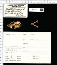 | Keywords: Naturalis Biodiversity Center - ZMA.MAM.4153.a pal - Mustela erminea Linnaeus - skull.jpeg artwork Dimensions artwork Document type Mustela Individual count 1 Infraspecific epithet Infraspecific rank Institution Naturalis Kind of unit artwork Kind of unit specimen skull Life stage Netherlands Noord Holland Texel Medium artwork Nomenclatural code Occurrence ID page Other fields Other versions artwork Permission license Naturalis donation CC-0 Publication location Scientific name Mustela erminea Linnaeus Scientific name authorship Linnaeus female Source url http //bioportal naturalis nl Specific epithet erminea State or province Noord Holland Subject keywords artwork Subject keywords publication Title artwork Title publication Type status Uploaded with GWToolset Naturalis_Biodiversity_Center_-_ZMA MAM 4153 a_pal_-_Mustela_erminea_Linnaeus_-_skull http //medialib naturalis nl/file/id/ZMA MAM 4153 a_pal/format/large Mammals at Naturalis from the Zoölogisch Museum Amsterdam Media donated by Naturalis Biodiversity Center Mustela erminea Mustela |