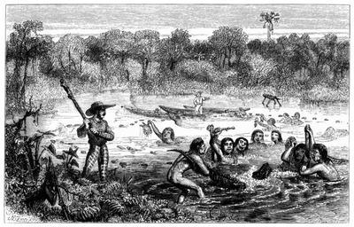 | Keywords: Naturalist on the River Amazons figure 28.png TURTLE FISHING AND ADVENTURE WITH ALLIGATOR Scanned from The Naturalist on the River Amazons by Henry Walter Bates University of California Press version published 1962 Engraving by Josiah Wood Whymper 1813-1903 based on a work by Johann Baptist Zwecker 1863 publication of first edition PD-old The Naturalist on the River Amazons Alligator mississippiensis Alligators in art Turtles in art Josiah Wood Whymper | ||||