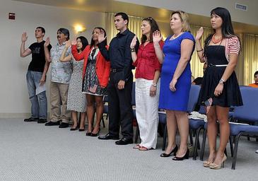 | Keywords: Naturalization Ceremony 140221-N-YB753-126.jpg en U S citizenship applicants from 11 different countries take the oath of allegiance at the Sigsbee Community Center Naval Air Station Key West is a state-of-the-art facility for air-to-air combat fighter aircraft of all military services and provides world-class pierside support to U S and foreign naval vessels U S Navy photo by Mass Communication Specialist 2nd Class Brian Morales/ Released 2014-02-21 Petty Officer 2nd Class Brian Morales https //www dvidshub net/image/1173180 140221-N-YB753-126 2014-02-24 15 48 KEY WEST FL US PD-USGov-Military-Navy Naval Air Station Key West Images from DoD uploaded by Fæ |