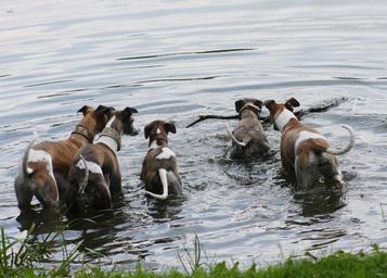 Keywords: nature animals dogs house pet greyhounds whippets langnasen competition nose forward snapped lake batons pet bathing spot