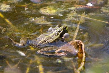 Keywords: nature animals pond amphibians frog quack air bubbles