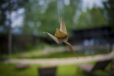 Keywords: nature birds bird living nature natur spring landscape birdhouse trees leaves grass green natural branch origami paper bird pond gazebo private house romance