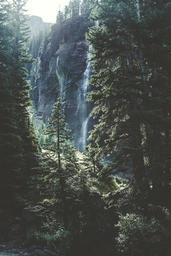 Keywords: nature forest trees pines waterfall mountain scenery