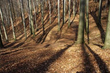 Keywords: nature forest trees tree trunks autumn leaves spring forest light shadow sunshine