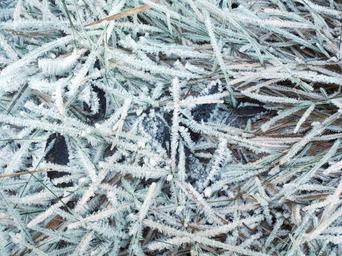 Keywords: nature grass ice frozen rime crystals icing winter frost white straws blades of grass