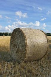 Keywords: nature hay bales arable cereals field clouds sky