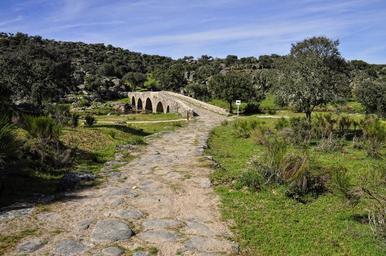 Keywords: nature landscape bridge sky green trees field old path