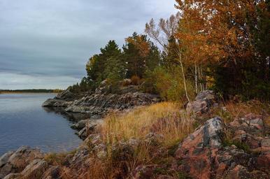 Keywords: nature landscape forest river trees autumn beach rock