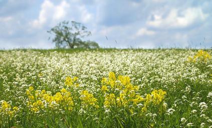 Keywords: nature landscape spring meadow flowers tree clouds sky green yellow white narew national park poland