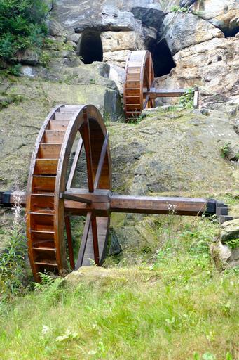 Keywords: nature landscape wooden wheels mill old historically rock mood fixed tourism rock formations