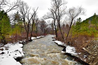 Keywords: nature over snow trees water forest river