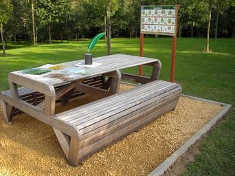 Keywords: nature park bank trees green hiking outdoor resting place picnic area have a picnic