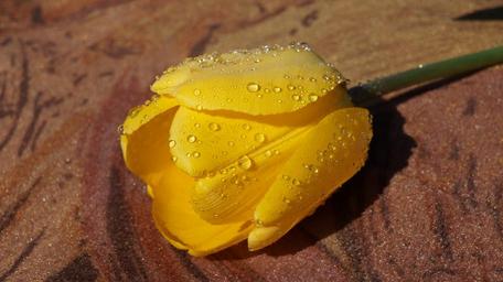Keywords: nature plant flower yellow lying drops water rosa tulip