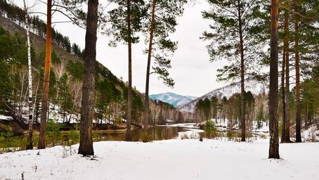 Keywords: nature snow trees water forest river landscape