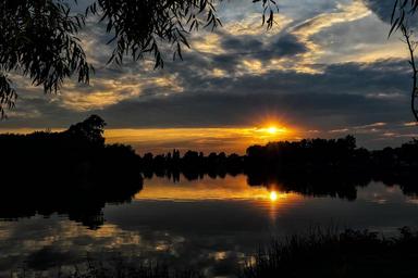 Keywords: nature sun clouds reflection lake beauty of nature sunset idyllic scene relax peacefully travel