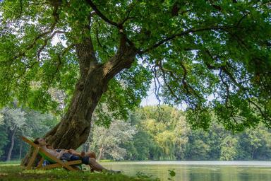 Keywords: nature tree park landscape summer in the green relax deck chair