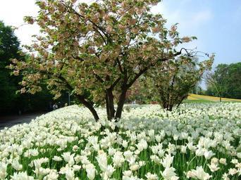 Keywords: nature trees tree in the tree landscape tulips white flowers walk park spring summer