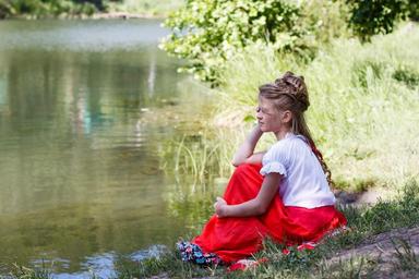 Keywords: nature water pond view of the lake lake reflection in the water summer silence background red good luck soothing calm floating water girl assol hill river bank lake shore beach pond
