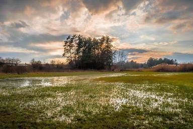 Keywords: nature water swamp flood twilight mood sunset mirroring landscape clouds rest