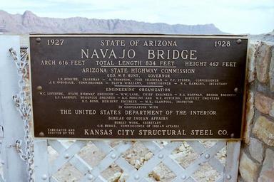 | Keywords: Navajobridge03.jpg Navajo Bridge crosses the Colorado River at Marble Canyon Arizona southwest of Page in northern Arizona United States Navajo Bridge überquert den Colorado River bei Page in Arizona Vereinigte Staaten own 1998-05-11 Nikater Own work all rights released Public domain Navajo Bridge Plaque Plaques in Arizona Navajo Bridge Bridge nameplates Bridge manufacturer's plates History of Coconino County Arizona Navajo Bridge | ||||