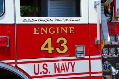 | Keywords: Naval District Washington Fire and Emergency Services Engine 43 140606-N-CG900-052.jpg en Naval District Washington NDW Fire and Emergency Services Engine 43 based at the Naval Research Laboratory NRL located adjacent to Joint Base Anacostia-Bolling JBAB now displays the name of Fire Department Battalion Chief John Johnny Mac McDonald and his title on the passenger doors of fire engines at NRL and JBAB for all firefighters entering the trucks to see each and every time they enter to perform their duties McDonald 54 a Navy veteran and a life member volunteer firefighter and former fire chief of the Stafford Virginia Volunteer Fire Department SVFD a volunteer battalion chief with the Stafford County Virginia Fire and Rescue Department and a paid firefighter and battalion chief with NDW McDonald passed while on duty at the JBAB-based NDW Central Battalion on May 30 2014 McDonald is credited with the saving of at least seven lives during his career While McDonald was the fire chief at SVFD which is also known as Stafford County Fire and Rescue Company 2 the department ™s motto Committed 2 Excellence was coined according to firefighter and SVFD president Curt Avis U S Navy photo by Joseph P Cirone/Released 2014-06-06 Joseph P Cirone https //www dvidshub net/image/1392867 140606-N-CG900-052 2014-06-11 20 54 STAFFORD VA US PD-USGov-Military-Navy Joint Base Anacostia-Bolling Images from DoD uploaded by Fæ |