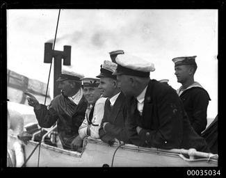 | Keywords: hood collection hoodcollection 35034 samuel j hood collection samueljhoodcollection hmas torrens hmastorrens torrens royal australian navy royalaustraliannavy navy naval vessel navalvessel sinking scuttled scuttling 1930 destroyer sydney sydney heads sydneyheads warship ship ran hmas anzac (g90) hmasanzacg90 hmas anzac hmasanzac g90 royal navy royalnavy rn hms anzac hmsanzac parker-class parkerclass blackandwhite monochrome photo border performer musician people black and white Having served in the Royal Australian Navy from 1916, latterly as a training platform for the Naval Reserve, HMAS TORRENS I was decommissioned and prepared as a target for Fleet Gunnery Practice. On 24 November 1930 Samuel J Hood, who was probably on board HMAS ANZAC, photographed the sinking of TORRENS off Sydney Heads. Royal Australian Navy officers and sailors are depicted here, probably on board ANZAC, witnessing the sinking. This photo is part of the Australian National Maritime Museum’s Samuel J. Hood Studio collection. Sam Hood (1872-1953) was a Sydney photographer with a passion for ships. His 60-year career spanned the romantic age of sail and two world wars. The photos in the collection were taken mainly in Sydney and Newcastle during the first half of the 20th century. The ANMM undertakes research and accepts public comments that enhance the information we hold about images in our collection. This record has been updated accordingly. Photographer: Samuel J. Hood Studio Collection Object no. 00035034 Having served in the Royal Australian Navy from 1916, latterly as a training platform for the Naval Reserve, HMAS TORRENS I was decommissioned and prepared as a target for Fleet Gunnery Practice. On 24 November 1930 Samuel J Hood, who was probably on board HMAS ANZAC, photographed the sinking of TORRENS off Sydney Heads. Royal Australian Navy officers and sailors are depicted here, probably on board ANZAC, witnessing the sinking. This photo is part of the Australian National Maritime Museum’s Samuel J. Hood Studio collection. Sam Hood (1872-1953) was a Sydney photographer with a passion for ships. His 60-year career spanned the romantic age of sail and two world wars. The photos in the collection were taken mainly in Sydney and Newcastle during the first half of the 20th century. The ANMM undertakes research and accepts public comments that enhance the information we hold about images in our collection. This record has been updated accordingly. Photographer: Samuel J. Hood Studio Collection Object no. 00035034 |