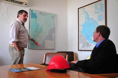 Keywords: nueva palmira nuevapalmira navios puerto granel trasbordo indoor El embajador Nelson durante su visita a las instalaciones de la Corporación Navíos S.A. en el puerto de Nueva Palmira, el 23 de noviembre de 2010, donde las cargas a granel desde barcazas procedentes de Puertos de Brasil, Bolivia y Paraguay e incluso de Argentina son descargadas, almacenadas y luego embarcadas en buques graneleros oceánicos. [U.S. Embassy photo by Vince Alongi / Copyright info] El embajador Nelson durante su visita a las instalaciones de la Corporación Navíos S.A. en el puerto de Nueva Palmira, el 23 de noviembre de 2010, donde las cargas a granel desde barcazas procedentes de Puertos de Brasil, Bolivia y Paraguay e incluso de Argentina son descargadas, almacenadas y luego embarcadas en buques graneleros oceánicos. [U.S. Embassy photo by Vince Alongi / Copyright info]