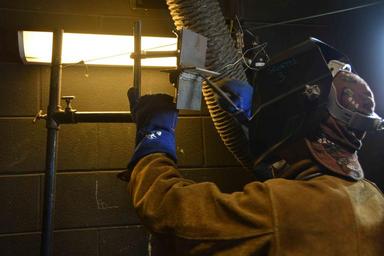 | Keywords: NAVSCIATTS' Students Learn Welding Techniques 160818-N-JK586-001.jpg en 160818-N-JK586-001 STENNIS SPACE CENTER Miss -- An international student attending the Naval Small Craft Instruction and Technical Training School's Technical Welding and Applied Repairs course practices arc welding techniques at NAVSCIATTS' facilities on the John C Stennis Space Center in Mississippi TWAR is an eight-week course that provides personnel with the knowledge and skills required to safely make structural repairs and perform preventative maintenance to aluminum steel fiberglass and rubber components in accordance with applicable factory technical manuals and approved doctrine NAVSCIATTS is U S Special Operations Command's international center specializing in mobile and in-residence training across the tactical operational and strategic spectrums in order to strengthen partner nation capabilities U S Navy photo by Leah Tolbert NAVSCIATTS deputy public affairs officer <br>Unit Naval Small Craft Instruction and Technical Training School 2016-09-06 Leah Tolbert https //www dvidshub net/image/2850099/navsciatts-students-learn-welding-techniques 160818-N-JK586-001 2016-09-13 10 38 STENNIS SPACE CENTER MS US PD-USGov-Military-Navy Images from US Navy location JOHN C STENNIS SPACE CENTER Miss Images from DoD uploaded by Fæ |