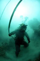 | Keywords: Navy Diver5.jpg Deep sea divers assigned to Mobile Diving Salvage Unit MDSU 1 deployed with Joint POW/MIA Accounting Command JPAC search the crash site of a WWII military aircraft for the remains of fallen service members near Palau http //www navy mil/view_image asp id 56229 2008-01-21 U S Navy photo by Mass Communication Specialist 2nd Class Christopher Perez PD-USGov-Military-Navy United States Navy Divers Underwater photographs of surface supplied divers | ||||