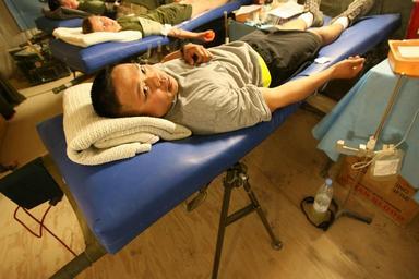 | Keywords: Navy Medical Unit DVIDS18662.jpg en After a recent insurgent attack in the Al Anbar Province of Iraq Army Capt Leyland C Torres 2nd Battalion 130th Infantry Regiment's adjutant does his share to aid a fellow service member he's never met donating blood at Camp Taqaddum's main surgical facility Often service members such as Torres a 32-year-old native of Oak Forest Ill will show up within five minutes of the request going out said Cmdr Richard L Schroff the officer in charge of Taqaddum Surgical Since taking over the facility Schroff a 43-year-old native of Carrollton Va and his unit have used the emergency blood donation system seven times including a stretch of four out of five days recently Taqaddum Surgical handles the duties of both a shock trauma platoon and a forward resuscitative surgical suite which are essentially makeshift emergency and operating rooms When a service member is injured in battle he receives specialized resuscitative treatment from the STP with surgery provided by the FRSS More extensive care is provided at one of the Combat Army Surgical Hospitals in Baghdad or Balad 2006-04-26 1st Lt Robert Shuford https //www dvidshub net/image/18662 18662 2006-04-26 10 25 AL ANBAR PROVINCE IQ PD-USGov Al Taqaddum Images from DoD uploaded by Fæ |