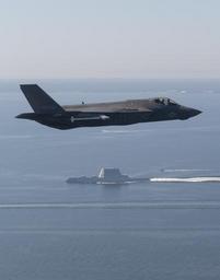 | Keywords: Navy's Next Gen F-35 Stealth Strike Fighter Flies Over Next Gen Stealth Guided-Missile Destroyer, USS Zumwalt (DDG 1000) 161017-N-VT045-002.jpg en An F-35 Lightning II Carrier Variant piloted by U S Marine Corps Maj Robert Champ Guyette II a test pilot from the F-35 Pax River Integrated Test Force assigned to the Salty Dogs of Air Test and Evaluation Squadron 23 flies over the stealth guided-missile destroyer USS Zumwalt as the ship transits the Chesapeake Bay on Oct 17 2016 USS Zumwalt the Navy's newest and most technologically advanced surface ship joined the fleet Oct 15 The F-35C Lightning II ” a next generation single-seat single-engine strike fighter that incorporates stealth technologies defensive avionics internal and external weapons and a revolutionary sensor fusion capability ” is designed as the U S Navy ™s first-day-of-war survivable strike fighter The U S Navy anticipates declaring the F-35C combat-ready in 2018 Unit Navy Media Content Services DVIDS Tags San Diego; Baltimore; F-35; Navy; Marine Corps; VX-23; Chesapeake Bay; NAVAIR; NAS Patuxent River; DDG-1000; F-35C; DDG 1000; 5th gen; Pax River; NMCS; USS Zumwalt; DVIDS Bulk Import; ITF; Pax River ITF; Atlantic Test Ranges; fifth gen; CF-02; next gen 2016-10-17 CV https //www dvidshub net/image/2932876/navys-next-gen-f-35-stealth-strike-fighter-flies-over-next-gen-stealth-guided-missile-destroyer-uss-zumwalt-ddg-1000 161017-N-VT045-002 2016-10-20 00 48 PATUXENT RIVER MD US PD-USGov-Military-Navy F-35C Lightning II Images from DoD uploaded by Fæ |