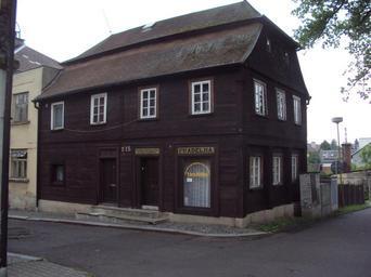 Keywords: NB Tkalcovská 215.JPG cs Stavení čp 215 je kulturní památkou na rohu ulic Tkalcovská a Bratří Čapků own Zákupák 2013-05-28 Tkalcovská Nový Bor Bratří Čapků Nový Bor Cultural monuments in Nový Bor