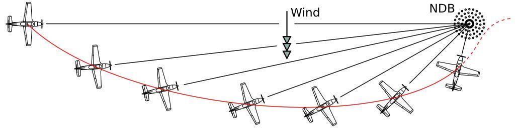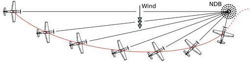 Keywords: NDB Homing.svg A diagram showing a plane homing in on a non-direction beacon NDB in a sidewind own 2008-01-10 Inductiveload NDB Homingcrp svg Non-directional beacon SVG aviation
